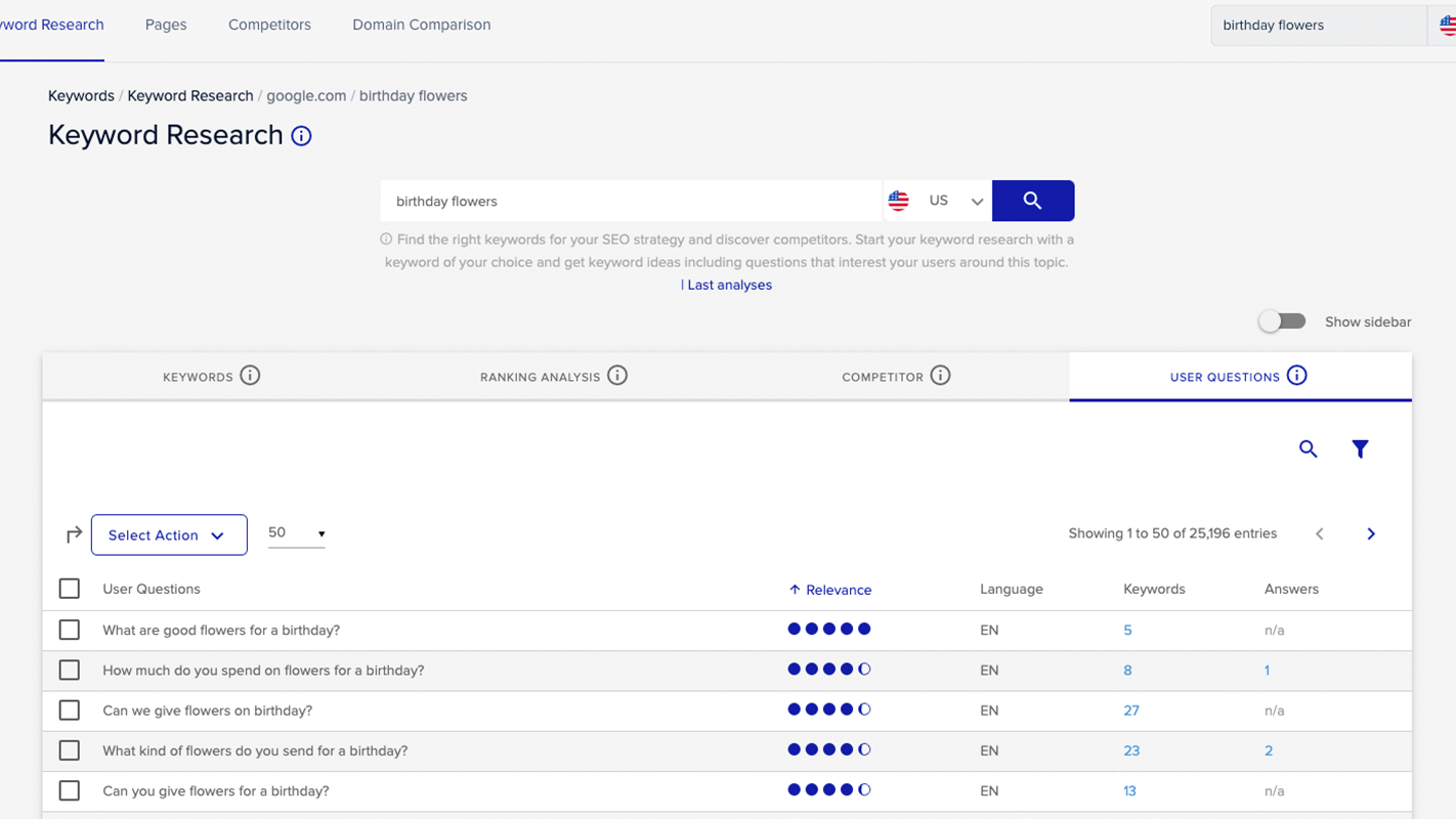 • Obtenha dados abrangentes de palavras-chave