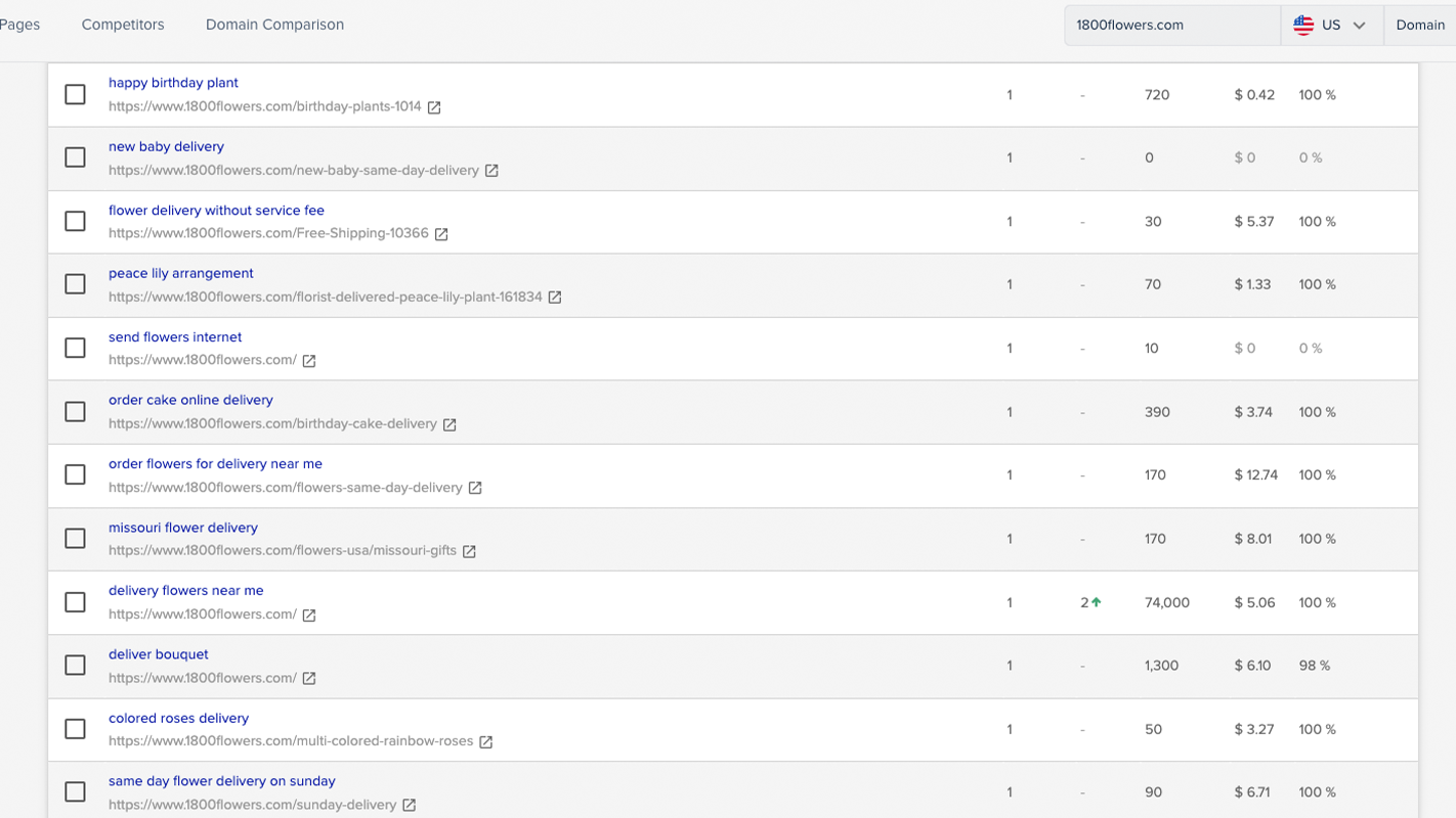 Talvez você já tenha parado para pensar: “Espere, mas eu não me importo com minha visibilidade de palavras-chave que não têm nada a ver com minha empresa”. E você está certo. Embora a visibilidade seja uma ótima pontuação para ter uma ideia do seu desempenho geral e comparar sites em geral, ela não é adaptada ao seu conjunto específico de palavras-chave.